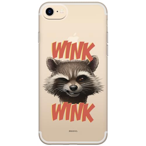 ERT GROUP mobiltelefonfodral för Apple Iphone 7/8/ SE 2/ SE 3 originalt och officiellt licensierat Marvel mönster Rocket 003 Vit anpassad till formen på mobiltelefonen, gedeeltelijk transparant