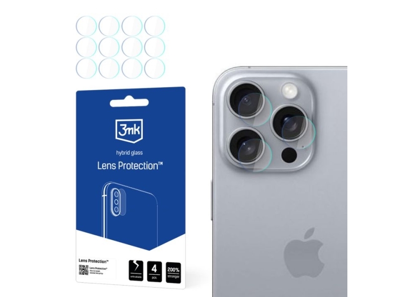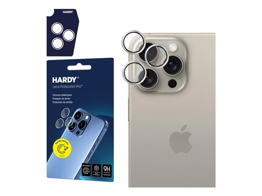 3Mk Hardy Lens Protection Pro, Apple, Apple Iphone 15 Pro, Reptålig, Splitterskyddad, Självtorkning, Transparent, 1 Styck