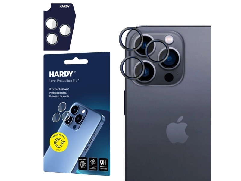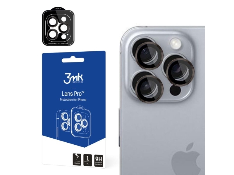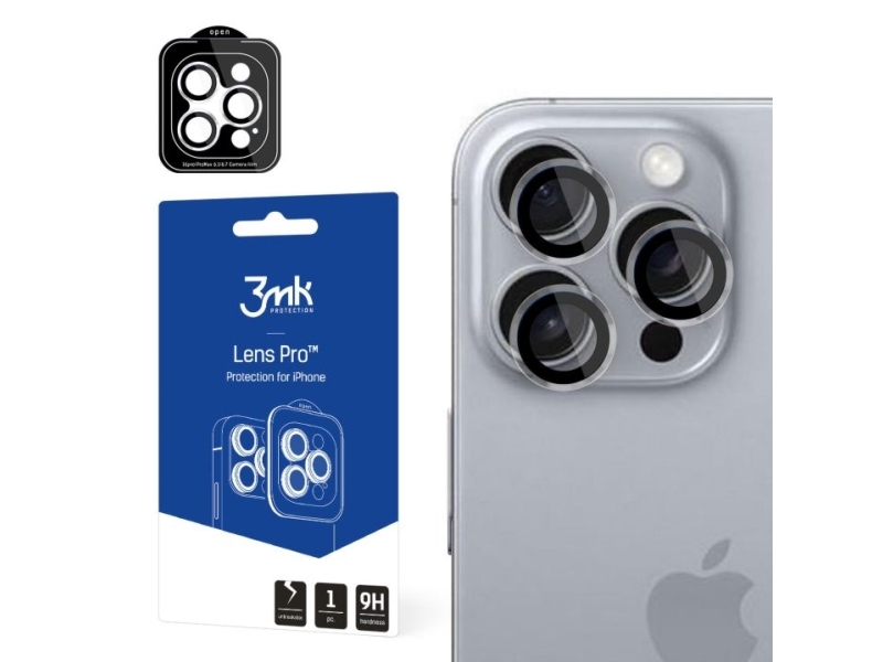 3Mk Hardy Lens Protection Pro Black, Apple, Iphone 15 Pro, Slagtålig, Reptålig, Splitterskyddad, Transparent, 3 Styck
