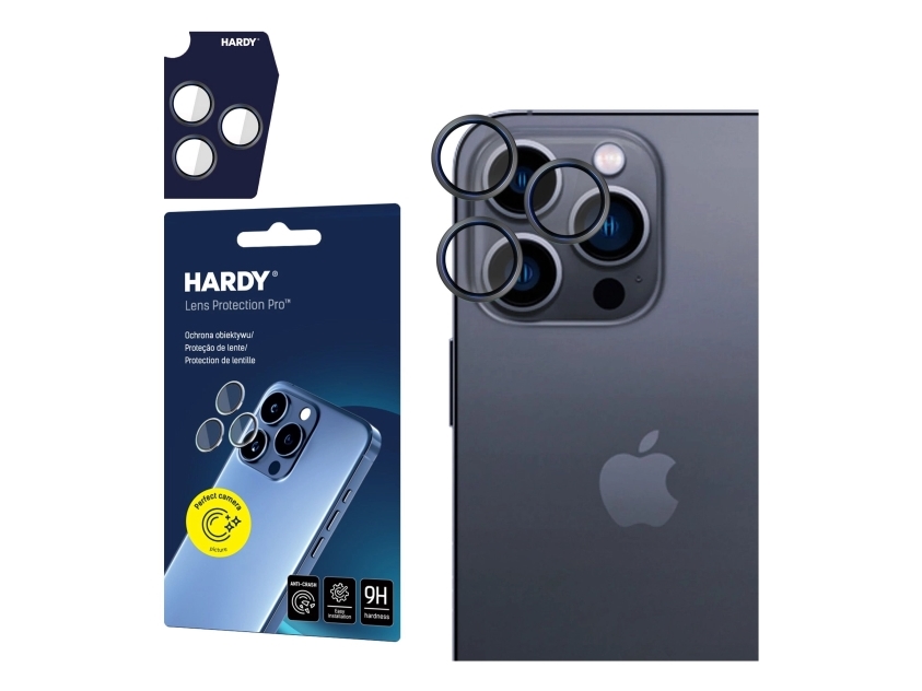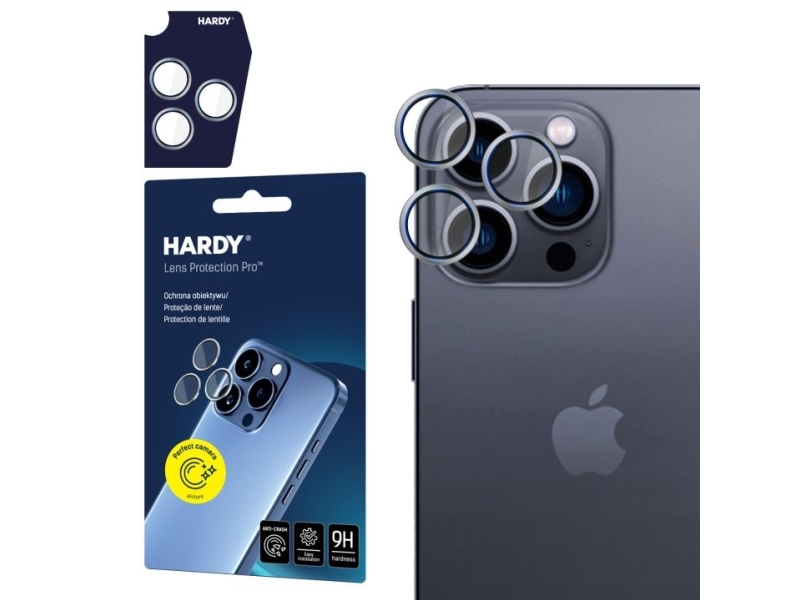 3Mk Hardy Lens Protection Pro, Apple, Apple Iphone 15 Pro, Reptålig, Splitterskyddad, Blå, Transparent, 1 Styck