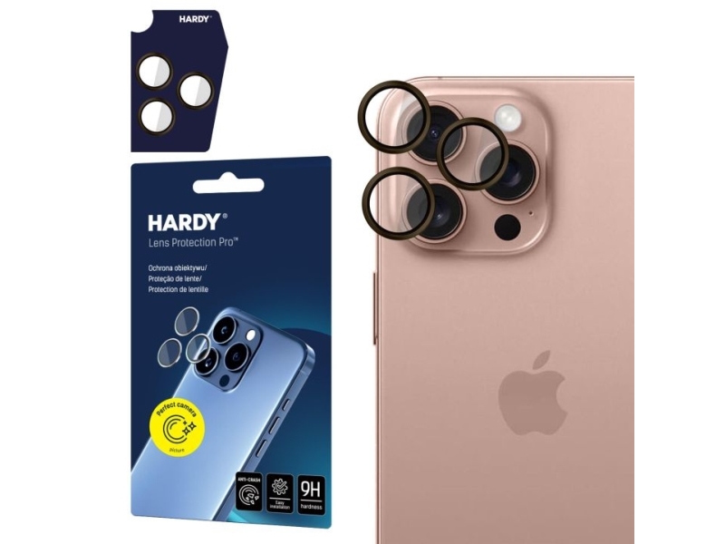 3Mk Hardy Lens Protection Pro, Apple, Iphone 16 Pro Max, Iphone 16 Pro, Stötsäker, Reptålig, Stöttålig, Brun, Rosa, Transparent