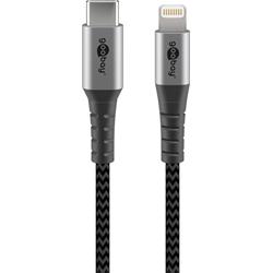 USB 2.0-kabel, C hane till Lightning, svart/grå, 2 meter