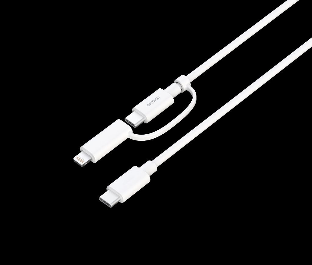USB-C till USB-C-kabel + Lightning-adapter 2-i-1, 1 meter, vit