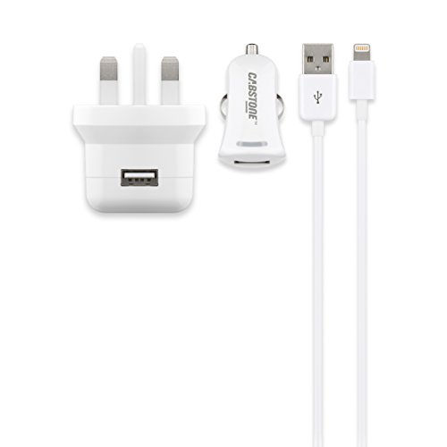 Cabstone USB-laddare set (bil- och kontaktnätdel inklusive Apple Lightning-kabel, 8-polig), Brittisk 3-stifts, Vit