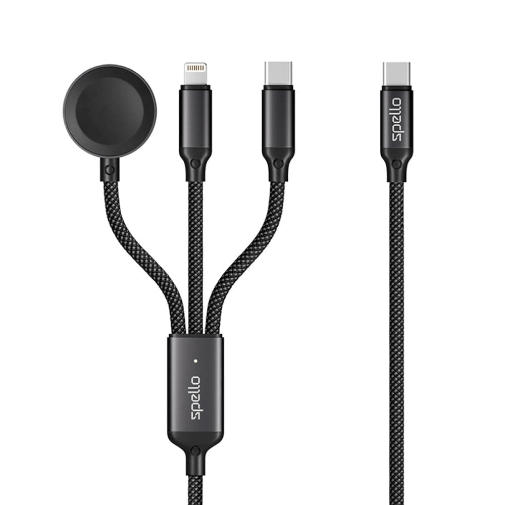 Spello 3-i-1 Multifunktionell 100W USB-C-Kabel med USB-C - Lightning - Apple Watch-Laddare - Svart