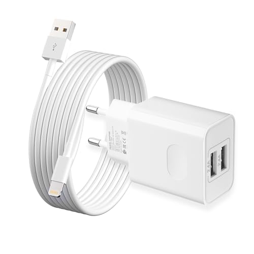 [Apple MFi-Certifierad] 12W USB-Laddare, 2-Portars Multipel Laddare med laddningskabel 1,5M, USB-Strömadapter Lightning-Kabel för Phone 14/13/12/11 Pro/XS/XR/SE/X/8/7 Plus/6S/iPad