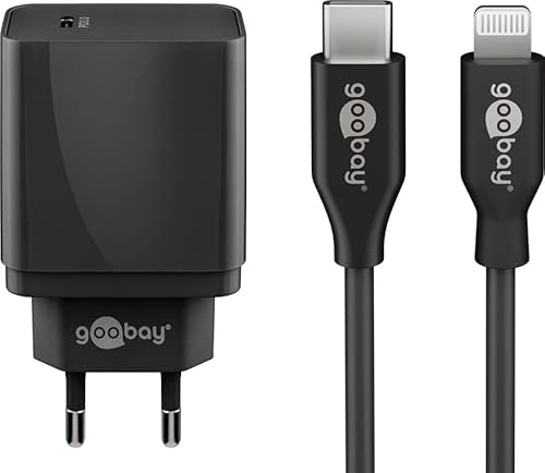 goobay 61086/USB-C Lightning USB-C laddare med strömförsörjning/iPhone snabbladdningskabel perfekt för iPhone 14 Pro/14 Pro Max/13 Pro/Pro Max/samt lämplig för andra Apple-enheter/(25 W) svart