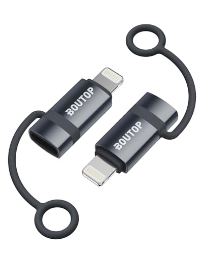BOUTOP [Apple MFi USB C till Lightning-adapter 36 W för snabbladdning, kompatibel med iPhone, iPad - [2 paket, mörkgrå]