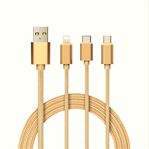 Shot Case 3-i-1-kabel för Wiko Y60 Android, Apple & typ C-adapter mikro USB Lightning 1, 5 m nylon (guld)