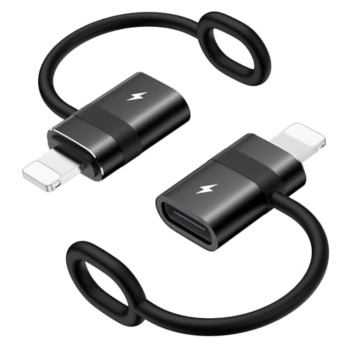 MoKo USB C to Lightning Adapter, Not for Audio/OTG, Lightning Male to USB C Female Adapter for iPhone 14/13/12/11/X Series, iPad/AirPods, Support Charging & Data Sync, with Anti-lost Loop, Black