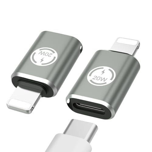 BOUTOP [Apple MFi-certifierad 36 W USB C till Lightning-adapter för snabb laddning, kompatibel med iPhone, iPad, iPod – [2 stycken, silver]
