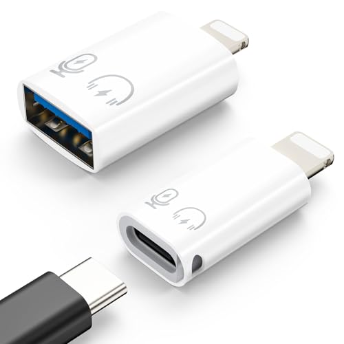 MoKo USB C Female to Lightning Male Adapter, Lightning Male to USB-A Female OTG Adapter Connector for i-Phone 14/13/12/11 Pro Max/iPad/iPod/AirPods, Support 10W Fast Charging/Data Transfer