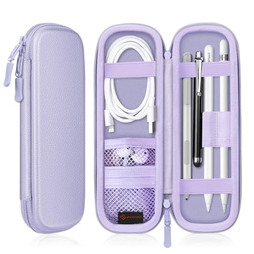 Fintie Hållarfodral för Apple Pencil (1:a och 2:a generationen), skyddande bärväska i PU-läder kompatibel med Apple Pen tillbehör, USB-kabel, hörlurar, Samsung Stylus, lila