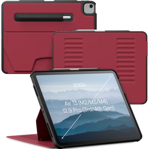 Zugu iPad Air 13 Case (M4/M3/M2) 2026/2025/2024 & iPad Pro 12.9 (3/4 Gen), slimmat skyddshölje, trådlös Apple Pencil Laddning, 10-vinkels Magnetic Stativ Skal & automatisk vila/väckning [Körsbärsröd]