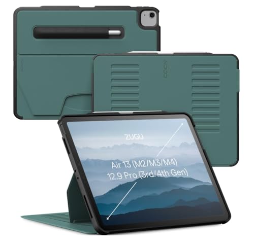 Zugu iPad Air 13 Tum Case (M4/M3/M2) 2026/2025/2024 & iPad Pro 12.9 (3/4 Gen), slimmat skyddshölje, trådlös Apple Pencil Laddning, 10-vinkels Magnetic Stativ Skal & automatisk vila/väckning [Tallgrön]