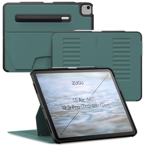 Zugu iPad Air Case 13 Tum (M3 / M2) 2025/2024 & iPad Pro 12.9 (3/4 Gen), slimmat skyddshölje, trådlös Apple Pencil Laddning, 10-vinkels Magnetic Stativ Skal & automatisk vila/väckning [Tallgrön]