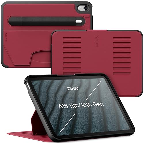 ZUGU CASE iPad (A16) 11/10 Generation Case 10.9-tums 2025/2022 fodral - Slimmat skyddshölje - Apple Pencil Ficka - Bekväm 8-vinkels Magnetic Stativ Skal - automatisk vila/väckning [Körsbärsröd]
