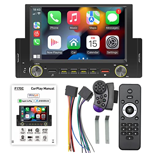 Rimoody Trådlös Apple Carplay 1 Din bilradio med Android Auto FM/AM/RDS Bluetooth-radio handsfree 5,1" bilradio med spegellänk Bluetooth USB/AUX/TF/EQ/DVR rattkontroller backkamera