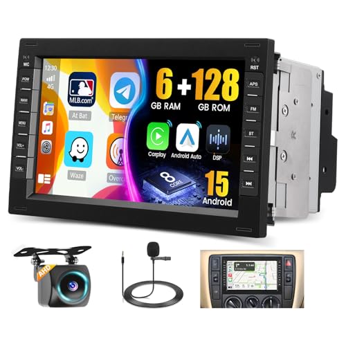 Dubbel Din bilradio kompatibel med Apple Carplay och Android Auto trådlös och trådbunden, 7 tum Android 11-radiomottagare, Bluetooth, backkamera, spegellänk, GPS/WIFI/USB, FM/RDS-radio