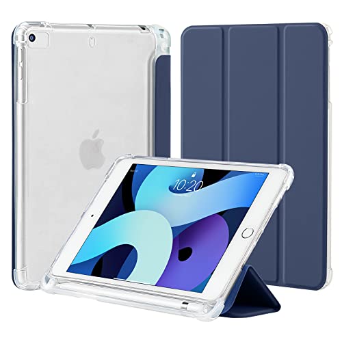 4UBonLife Fodral för iPad Mini 5 Mini 4 med Pennhållare 7,9 tum, Smalt Lätt Smart Cover Case, Mjuk TPU Genomskinligt Frostat Bakskydd Skal för iPad Mini 4:e 5:e, Mörkblå