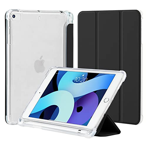 4UBonLife Fodral för iPad Mini 5 Mini 4 med Pennhållare 7,9 tum, Smalt Lätt Smart Cover Case, Mjuk TPU Genomskinligt Frostat Bakskydd Skal för iPad Mini 4:e 5:e, Svart