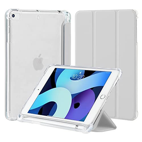 4UBonLife Fodral för iPad Mini 5 Mini 4 med Pennhållare 7,9 tum, Smalt Lätt Smart Cover Case, Mjuk TPU Genomskinligt Frostat Bakskydd Skal för iPad Mini 4:e 5:e, Ljusgrå