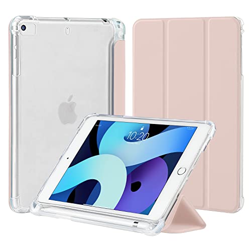 4UBonLife Fodral för iPad Mini 5 Mini 4 med Pennhållare 7,9 tum, Smalt Lätt Smart Cover Case, Mjuk TPU Genomskinligt Frostat Bakskydd Skal för iPad Mini 4:e 5:e, Rosa