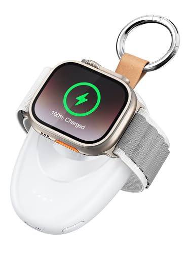 LVFAN Portable Charger for Apple Watch, 1400mAh Power Bank for iWatch, Keychain Battery Pack for Travel, Magnetic Wireless Charger for Apple Watch Series 9/8/7/6/5/4/3/2/SE/SE 2/Ultra/Ultra 2 - White