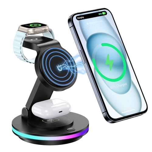 NIUYANE 3-i-1-laddningsstation, 15 W snabbladdare för Apple MagSafe-laddningsstativ, trådlöst laddningsstativ för Apple Watch, AirPods och