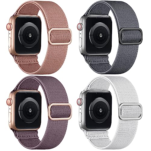 Mastten 4 stycken flätat armband kompatibelt med Apple Watch armband 41 mm 42 mm 40 mm 38 mm kvinnor och män, elastiskt nylontyg armband sport sololoop för iWatch SE Series 11 10 9 8 7 6 5 4 3 2 1