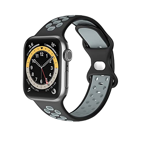Epova Sportarmband kompatibelt med Apple Watch 42 mm, 44 mm, 45 mm, 49 mm, kvinnor och män ventilerande silikonarmband för iWatch SE 3 Series 11 10 9 8 7 6 5 4 3 2 1, svart/grå, stor
