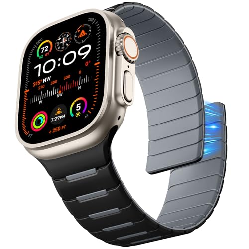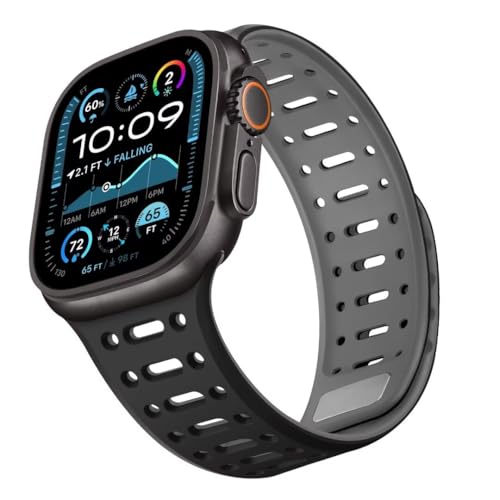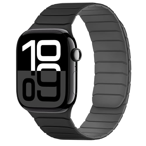 Epova Magnetiskt silikonarmband kompatibelt med Apple Watch-armband 46 mm, 49 mm, 45 mm, 42 mm, 44 mm, magnetsportarmband för iWatch Ultra 3 SE 3 Series 11 10 9 8 7 6 5 4 3 2 1, svart/grå