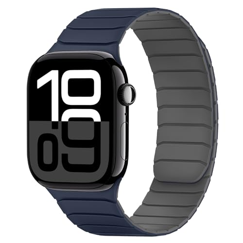 Amizee Armband kompatibelt med Apple Watch 49/45/44/42/41/40/38 mm, av silikon, magnetiskt sportloop, armband för iWatch Ultra 2/Ultra Series 9/8/7/SE/6/5/4/3/2/1 (49/45/44/42, mörkblå/grå)