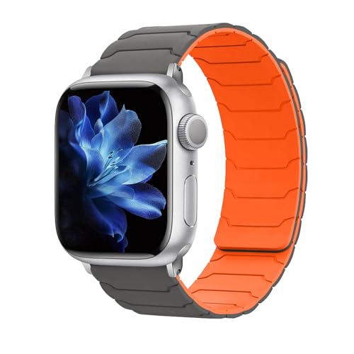 Hinnwer Magnetisk rem kompatibel med Apple Watch-remmar 42 mm 41 mm 40 mm 38 mm för män kvinnor, starkt silikon magnetiska sportögla band för Apple Watch SE 2/SE/serie 10/9/8/7/6/5/4/3/2/1 grå orange,