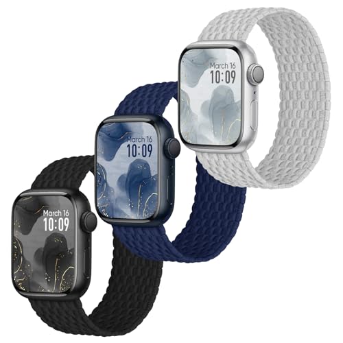 Raradev 3 stycken flätat armband kompatibelt med Apple Watch-armband, 41 mm, 40 mm, 38 mm, 44 mm, 45 mm, 42 mm, elastiskt nylonband, Solo Loop sportarmband för iWatch Series 9, 8, 7, 6, 5, 4, 3, 2, 1