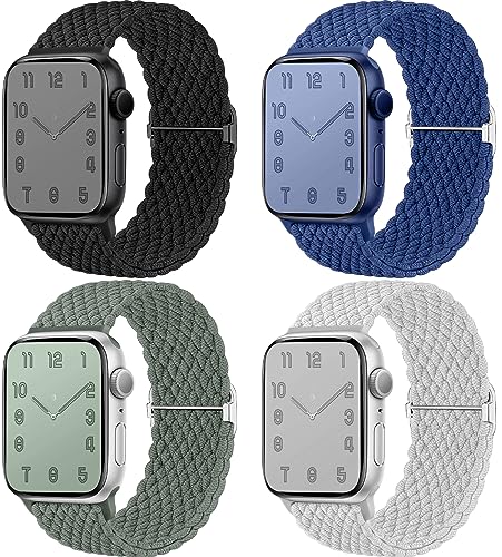 Oielai 4 stycken armband kompatibla med Apple Watch-armband 41 mm, 38 mm, 40 mm, elastiskt flätat nylonband för Apple Watch SE/iWatch Series 9 8 7 6 5 4 3 2 1