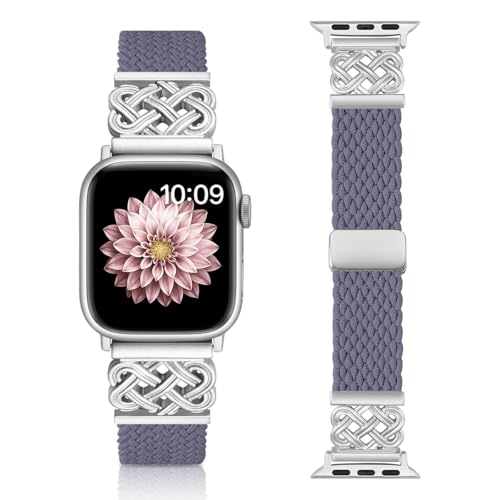 AiiBowy flätat armband kompatibelt med Apple Watch-armband 42 mm, 41 mm, 40 mm, 38 mm, elastiskt nylon magnetiskt klockarmband för iWatch SE 3/SE 2/SE/Series 11/10/9/8/7/6/5/4/3/2/1 gråblå rosa