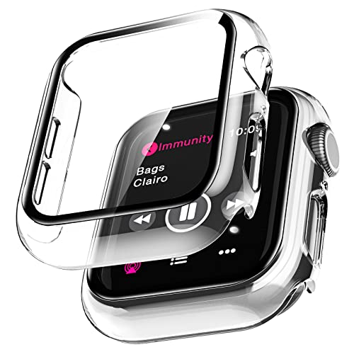 LK 2-pack fodral för Apple Watch 40 mm, serie 6, 5, 4, SE, med inbyggt skärmskydd helt i härdat glas, hårt PC-skyddande, högupplöst, klart skydd för iWatch, klart