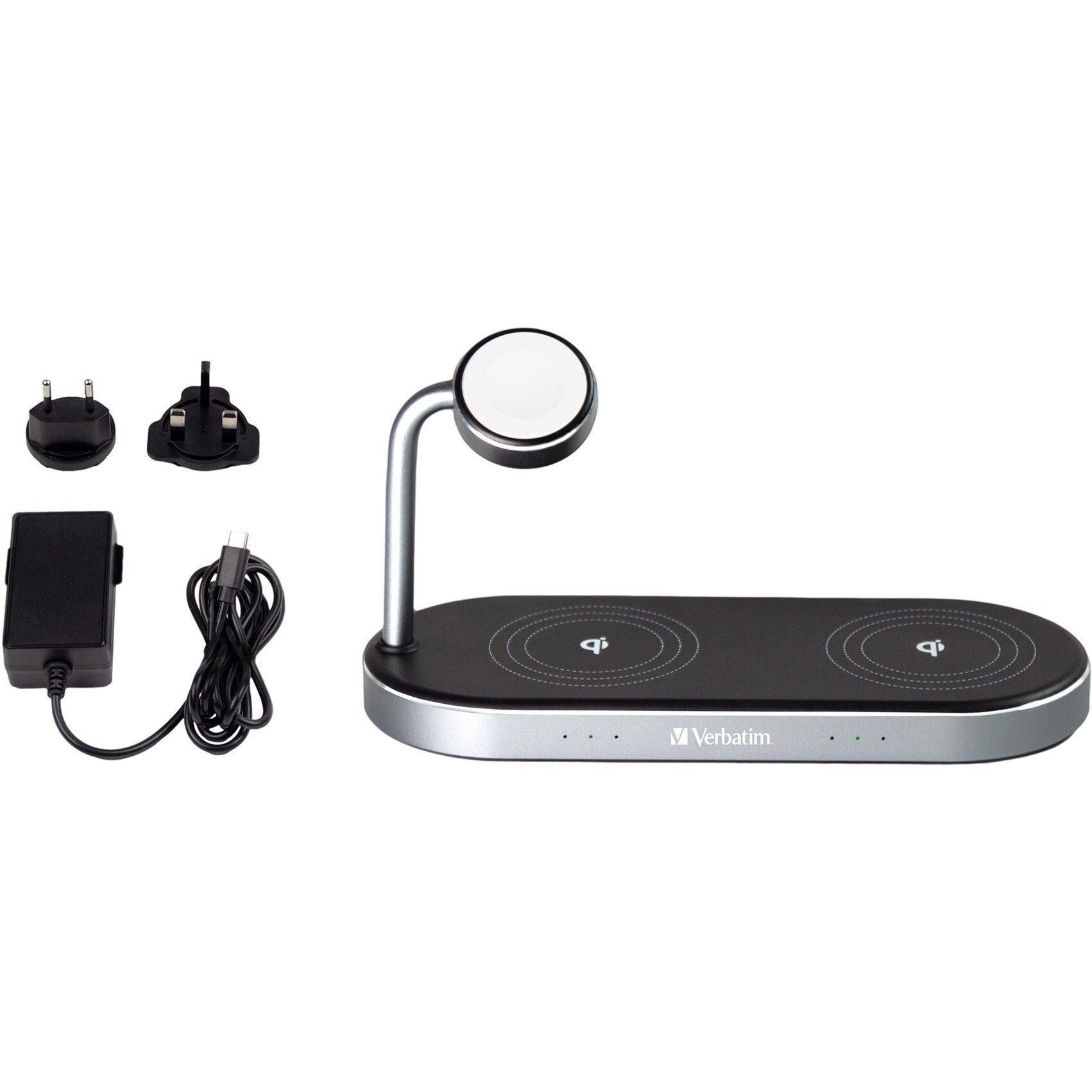 Verbatim Wireless 3-in-1 charging stand WCS-03, Qi, MFi, charging station (black/aluminum, for Apple Watch, iPhone, etc.)