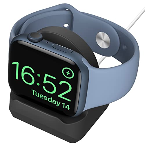 MoKo Charger Stand Compatible with Apple Watch Ultra 2/Ultra/SE/Series 10/9/8/7/6/5/4/3/2/1, Durable Silicone Charging Dock Holder, Support Nightstand Mode for iWatch 49/46/45/44/42/41/40/38mm, Black