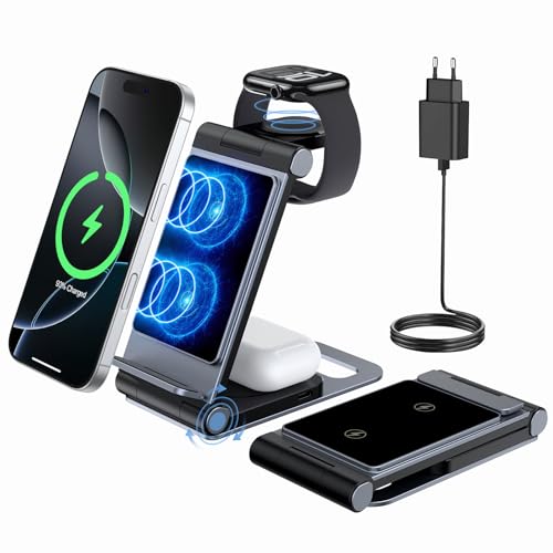 3-in-1 Charging Station, Multiple Devices, Magnetic Charging Station, for Apple Watch and iPhone, Travel Wireless Charger Stand, Foldable Magnetic Inductive, Fit Apple Watch