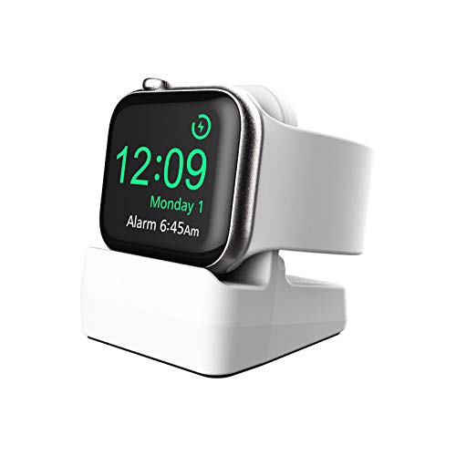 MoKo Charger Stand Compatible with Apple Watch Ultra 2/Ultra/SE/Series 10/9/8/7/6/5/4/3/2/1, Durable Silicone Charging Dock Holder, Support Nightstand Mode for iWatch 49/46/45/44/42/41/40/38mm, White