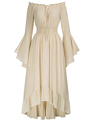 Scarlet Darkness dam renässans maxiklänning, mjuk midja hög låg design, medeltida klänning, Aprikos, XL