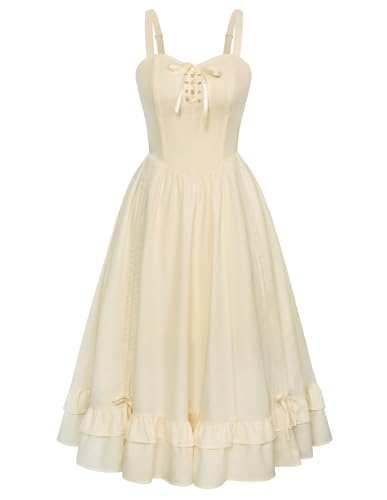 Scarlet Darkness korsett klänning för kvinnor renässans klänning midi ärmlös viktorianska klänningar, Aprikos, S