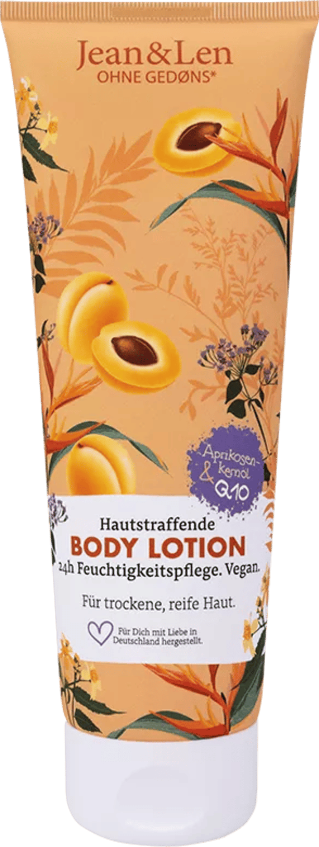 Jean & Len Huduppstramande Body Lotion, Med Aprikoskärnolja Och Q10, För Torr Och Mogen Hud, Ger Smidig Och Slät Hud Vid Regelbunden Användning, Utan Parabener Och Silikoner, Vegansk, 250 Ml