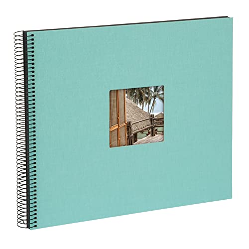 goldbuch 25907 spiralalbum Bella Vista, fotoalbum med fönsterutskärning för egen bild, 34 x 30 cm, fotoalbum med 40 svarta sidor, minnesalbum av linne, fotoalbum aqua