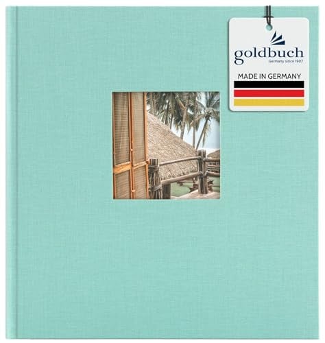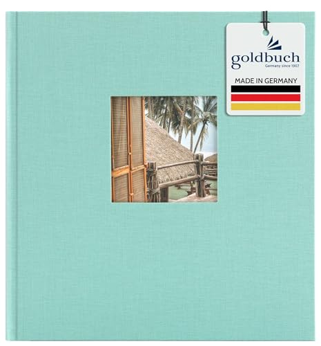 goldbuch 26507 skruvalbum med fönsterutskärning, Bella Vista Trend, 30 x 25 cm, fotoalbum med 40 svarta sidor med skyddspapper, utbyggbart album, fotobok av linne, aqua