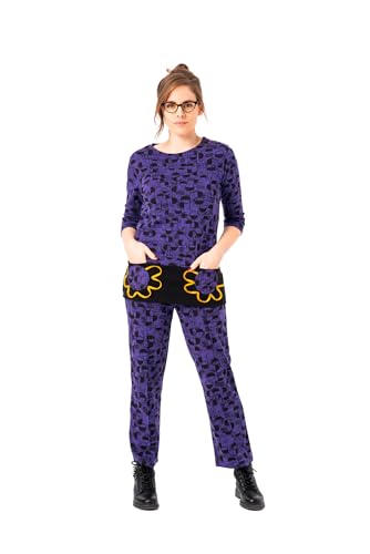 Mamatayoe Aquitaine dam långärmad svart tryckt t-shirt med broderade detaljer för höst och vinter. Rak stickad topp med rund hals och lediga fickor., Kombination, S