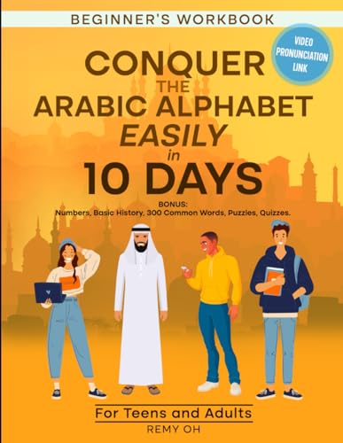 CONQUER THE ARABIC ALPHABET EASILY IN 10 DAYS: Adult Beginners. BONUS: Numbers, Basic History, 300 Common Words, Puzzles, Quizzes