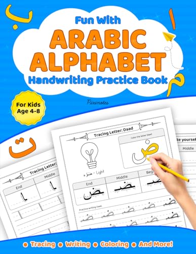 Fun with Arabic Alphabet Handwriting Practice Book for Kids Ages 4-8: Learn to Write Arabic Alphabet Workbook for Beginners, Alif Baa Taa Alphabet, Letter Tracing, Writing, Coloring, And More!